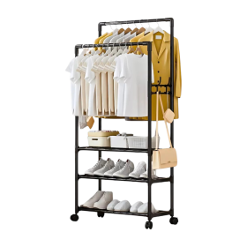 Τροχήλατη κρεμάστρα δαπέδου με ράφια παπουτσιών – YH6619-3 – 522831 – Black