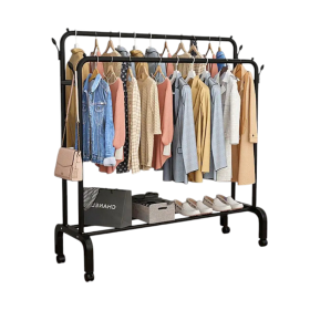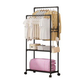 Τροχήλατη κρεμάστρα δαπέδου με ράφια παπουτσιών – YH6619-2 – 522824 – Black