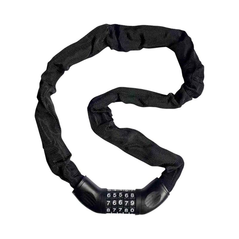 Αλυσίδα κλειδώματος ποδηλάτου με κωδικό ασφαλείας 5 ψηφίων, ατσάλινη, με υφασμάτινη προστατευτική επένδυση για να μην χαράζει την ζάντα.