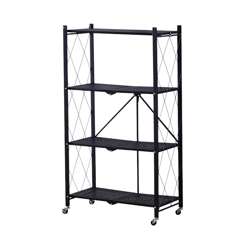 Μεταλλική ραφιέρα 4 επιπέδων, πτυσσόμενη για εύκολη αποθήκευση, ιδανική για οργάνωση οικιακών χώρων και αποθήκης.