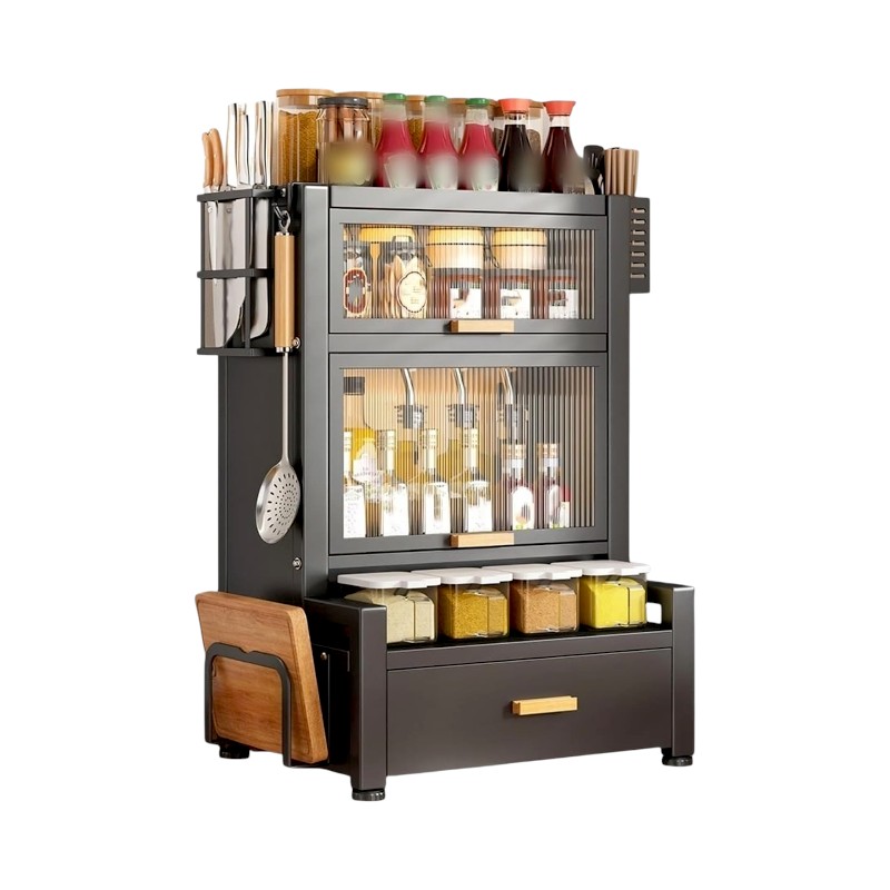 Πλαστικό ντουλαπάκι και ραφιέρα οργάνωσης πάγκου κουζίνας, με στιβαρό μεταλλικό σκελετό,