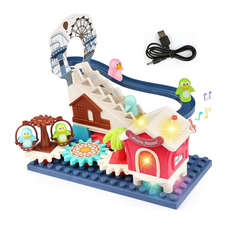 Παιχνίδι Λούνα Πάρκ με πιγκουίνους και φωτισμό. Επαναφορτίζεται με καλώδιο USB.