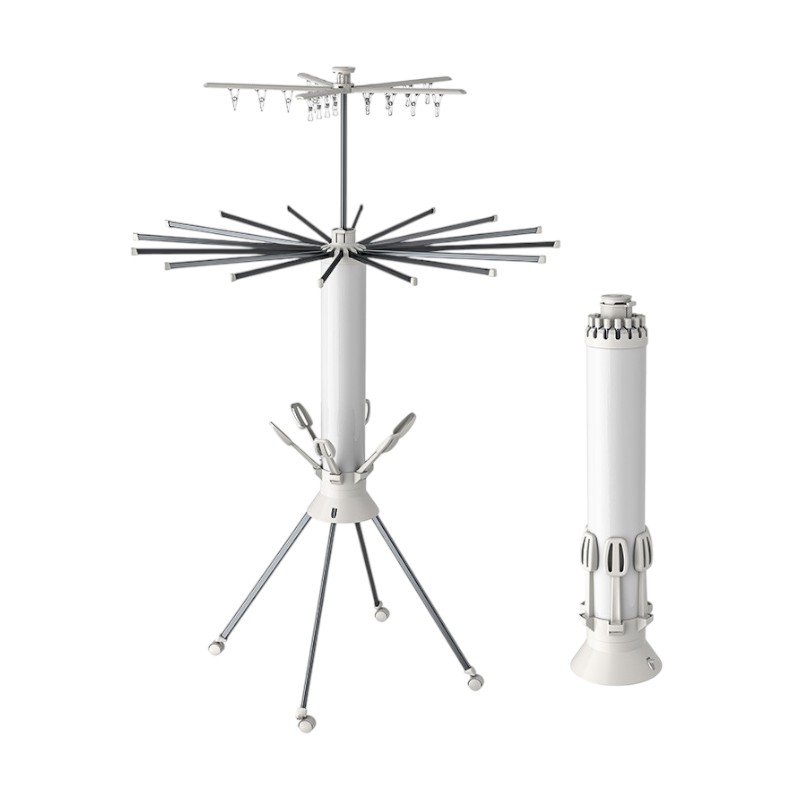 Πτυσσόμενη κρεμάστρα δαπέδου και απλώστρα ρούχων πολλαπλών χρήσεων, με μεταλλικό σκελετό, ροδάκια μετακίνησης και εργονομικό σχεδιασμό που αναδιπλώνεται για εξαιρετικά εύκολη αποθήκευση και μεταφορά χωρίς να καταλαμβάνει χώρο.