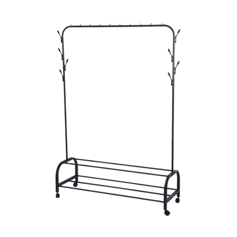 Τροχήλατη κρεμάστρα δαπέδου με ράφια παπουτσιών – YP-608 – 522629 – Black