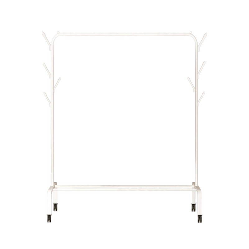 Τροχήλατη κρεμάστρα δαπέδου μονή, μεταλλική, με ράφι παπουτσιών και πλαϊνές κρεμάστρες, ιδανική ως έπιπλο εισόδου ή για την οργάνωση των ρούχων στο δωμάτιό σας.