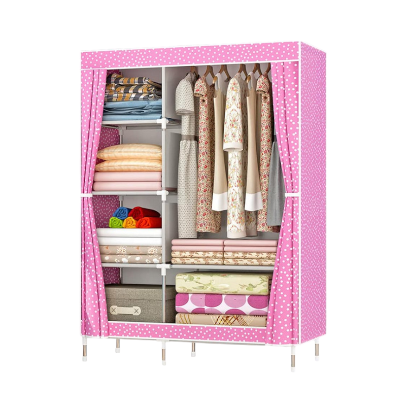 Υφασμάτινη ντουλάπα ρούχων με ράφια – PL13-105 – 521643 – Pink