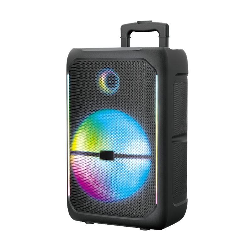 Φορητό ηχείο subwoofer με εξαιρετικής ποιότητας ήχο, εντυπωσιακό φωτισμό που προσαρμόζεται στο ρυθμό της μουσικής και πρακτικό σχεδιασμό μεταφοράς-τρόλεϊ .