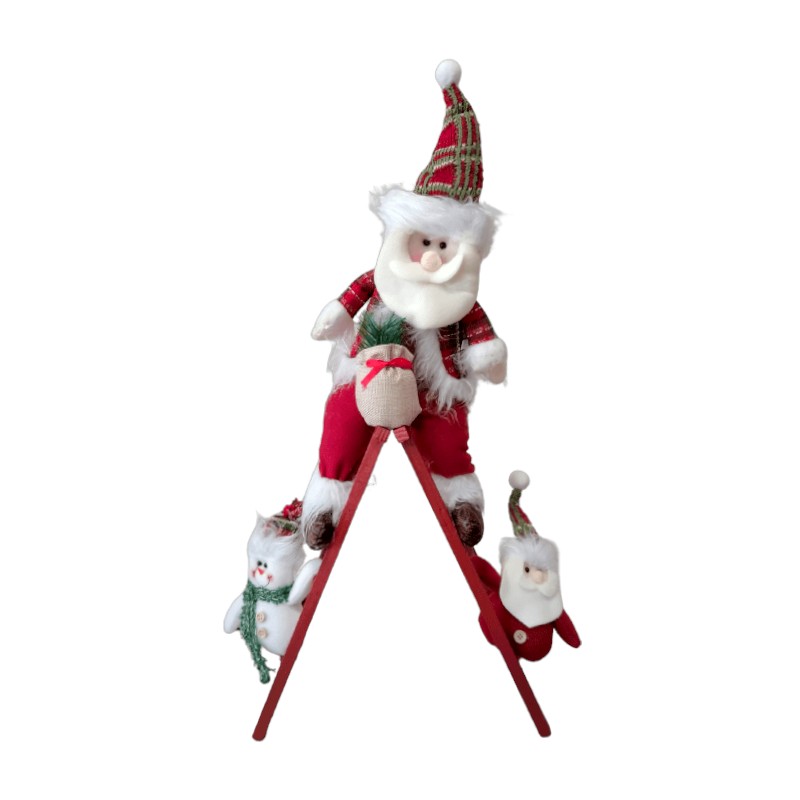 Χριστουγεννιάτικη λούτρινη κούκλα σε ξύλινη σκάλα – 70cm – 212153