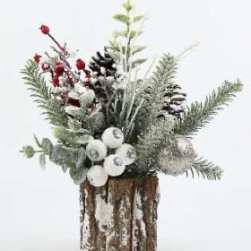 Χριστουγεννιάτικο διακοσμητικό δεντράκι με επιτραπέζια βάση-πουγκί και εντυπωσιακή σύνθεση με στολίδια και υπέροχες ρεαλιστικές λεπτομέρειες. Ύψος: 20cm.