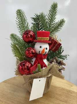 Χριστουγεννιάτικο διακοσμητικό δεντράκι με επιτραπέζια βάση-πουγκί και εντυπωσιακή σύνθεση με στολίδια και υπέροχες ρεαλιστικές λεπτομέρειες. Ύψος: 25cm.