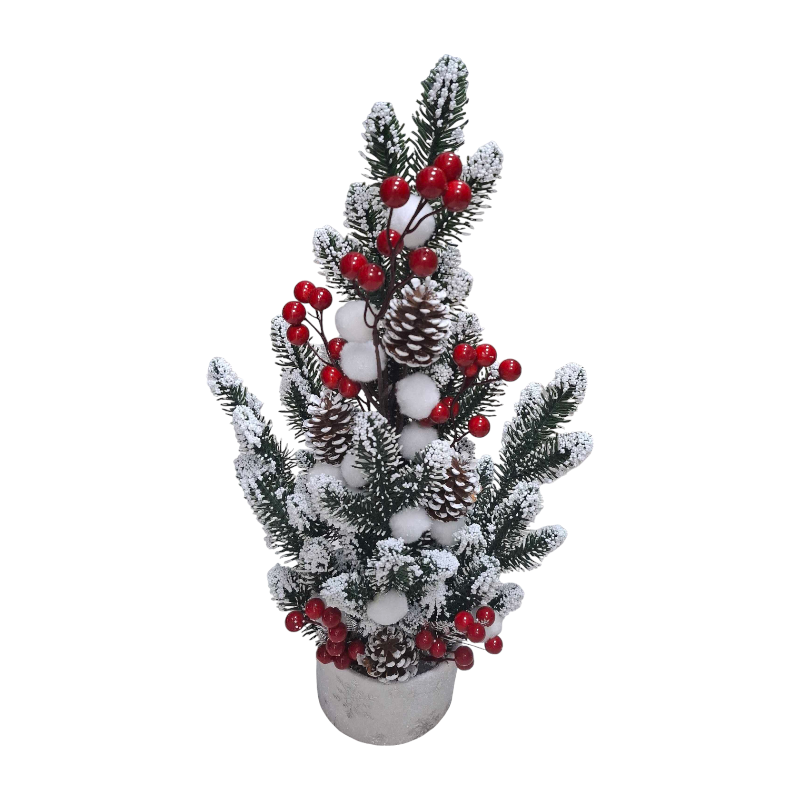 Χριστουγεννιάτικο διακοσμητικό δεντράκι με επιτραπέζια βάση και εντυπωσιακή σύνθεση με στολίδια και υπέροχες ρεαλιστικές λεπτομέρειες. Διαστάσεις: 40*18cm.